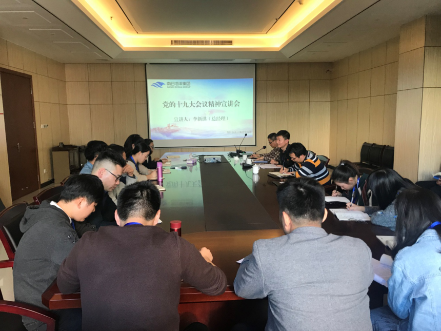 莆田市南日集团党支部把学习宣传贯彻党的十九大精神作为公司当前和今后一个时期的首要政治任务。我支部积极开展“十九大精神宣讲周”活动,在林超雄董事长深入南投公司、旅游公司宣讲十九大精神的基础上,组织其他集团领导深入各子公司进行宣讲,实现了十九大精神在南日集团的全覆盖。