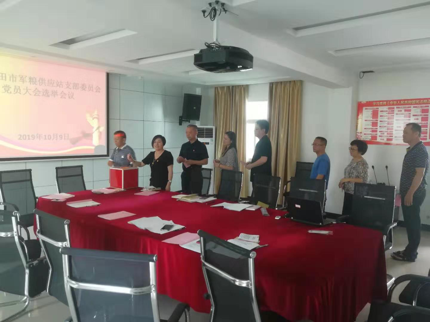2019年10月9日上午,中共莆田市军粮供应站支部委员会在站会议室召开了党员大会,大会选举新一届支部委员会委员,会议由站负责人陈德源主持,91网 党委筹备工作领导小组代表出席会议,支部共有党员8人,参会党员8人。 会议在庄严的国歌声中拉开序幕,按照党章规定,经到会党员充分酝酿讨论,采取无记名投票方式和差额选举办法,选举陈德源、陈逸涵、陈锋等3位同志为新当选党支部委员会委员。随后,新当选的支部委员会委员召开了第一次党支部委员会,选举支部书记,并进行委员分工。 新当选的支部书记陈德源表示,今后将在上级党组织的领导下,认真履行职责,抓好党建工作,充分发挥党支部的战斗堡垒作用,有力凝聚广大党员干部职工,为军粮供应站的发展发挥积极作用。其他与会党员纷纷表示愿意在党支部组织领导下,继承革命优良传统,发扬奋斗精神。在各自岗位上,充分发挥党员的先锋模范作用,影响和带动其他员工爱岗敬业,奋发有为。 ![]()