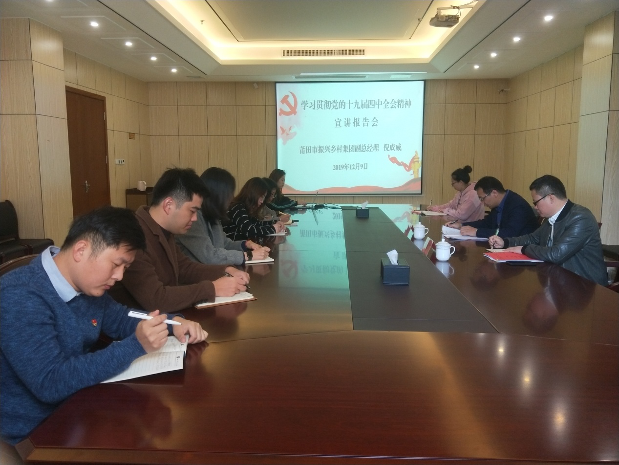 12月9日,91网 党委筹备工作领导小组副组长倪成威同志先后前往科技服务公司党支部、莆田市军粮供应站党支部召开学习贯彻党的十九届四中全会精神宣讲会。所到基层党组织全体党员参会。 宣讲会上,倪成威同志转达了国资系统学习贯彻党的十九届四中全会精神宣讲报告会精神。原原本本领学《中共中央关于坚持和完善中国特色社会主义制度、推进国家治理体系和治理能力现代化若干重大问题的决定》,系统阐述、深入解读我国国家制度和国家治理体系中13个方面的优势,传达中央13个坚持,并对认真学习宣传贯彻党的十九届四中全会精神谈了认识体会。 倪成威同志强调,要把学习贯彻党的十九届四中全会精神作为当前的一项重要政治任务,不断健全和完善各项制度,坚持把学习贯彻党的十九届四中全会精神贯彻落实到各项工作之中,进一步加强平台运营能力,做好线上线下推广,着力盘活资源,保障军粮供应,提高服务质量,持续推动工作高效有序开展。 ![]()