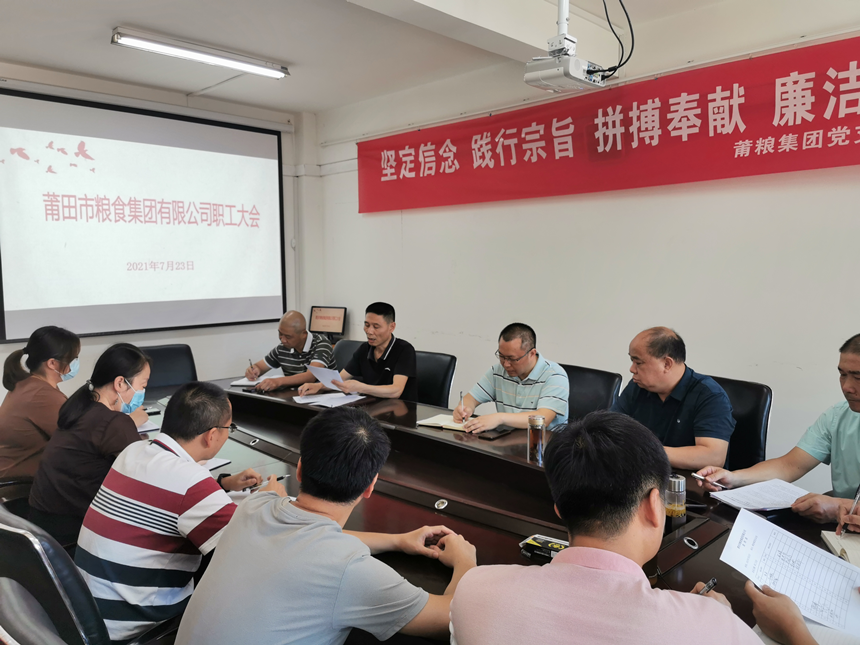 为进一步完善企业用工机制,提升公司组织人事工作制度化、科学化和规范化建设水平,7月23日,莆田市粮食集团有限公司召开职工大会,审议理顺待岗、退岗合同到期人员关系方案。公司本部、湄洲粮站及城厢胜利粮油加工厂共25名职工参加了会议。