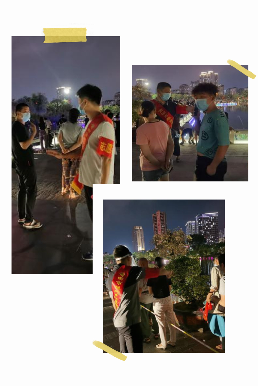 党员同志林捷、方志雄、曾金圳,白天正常上班,晚上6点开始继续在南湖公园核酸检测点协助服务工作,有时到深夜,仍坚守岗位,没有怨言。
