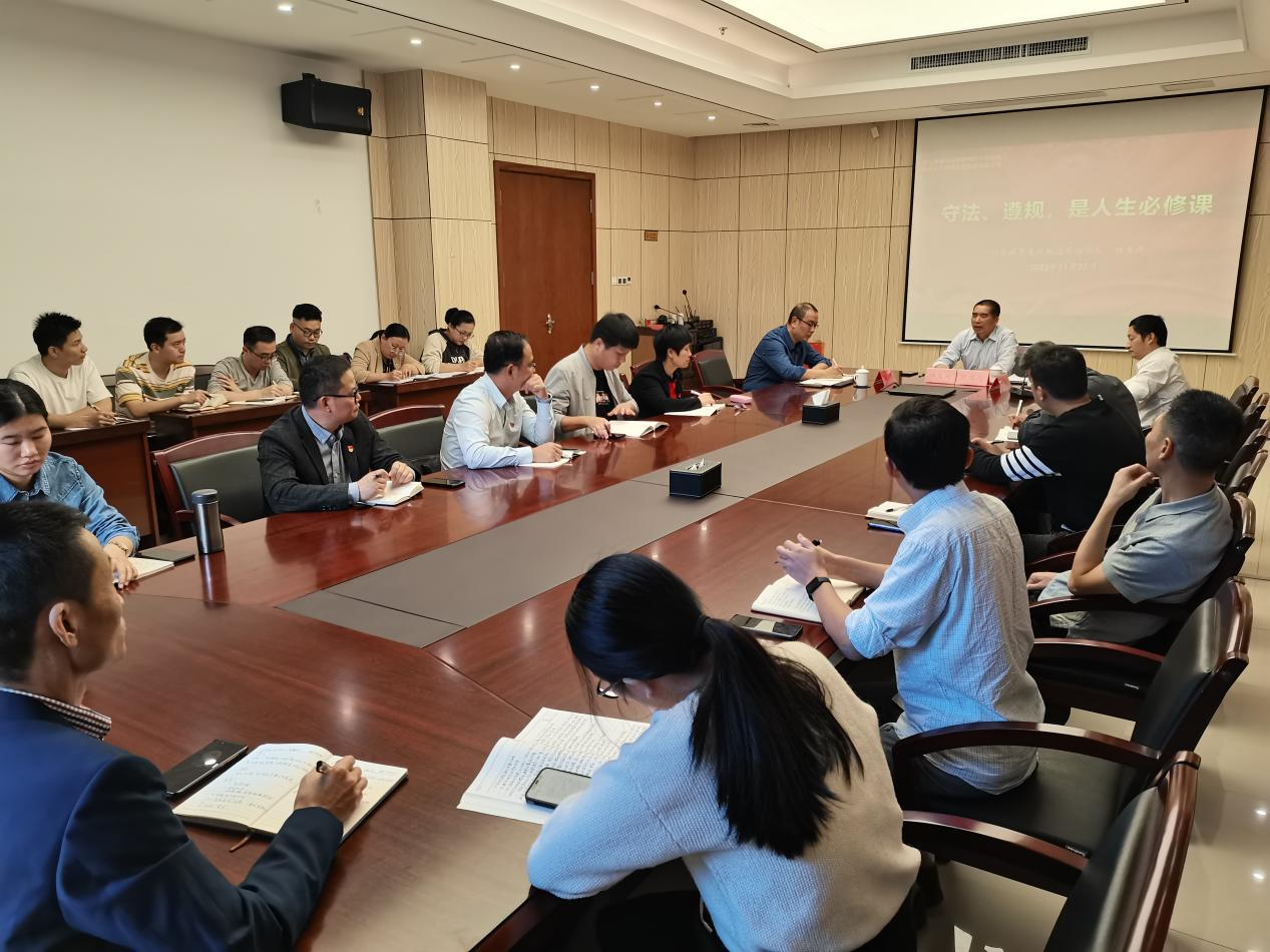 为增强党员干部纪律规矩意识,切实筑牢拒腐防变的思想防线,2023年11月23日,驻市国资委纪检监察组组长林生兴莅临市91网 ,为全体党员干部上了一堂以“守法、遵规,是人生必修课”为题的主题教育专题党课。91网 领导班子成员、全体中层干部及直属党支部全体党员参加。 党课从“人性、道德与纪法制度”“社会与人的社会属性”、“纪法制度是社会存在和运行的基础”等方面阐述了守法遵规对人生和社会的意义;从个人与社会的双重角度入手,对“守法遵规”的含义、属性以及重要影响作了详细的解释说明,由浅入深地将遵纪守法这一基本的公民规范刻入在场党员干部们的心中;从多起违纪违法案例出发,进行深入阐述,让在场党员领导干部清楚的知道职务犯罪、职务违法、违反党纪的行为后果,不断拧紧廉洁从政思想“螺丝”。