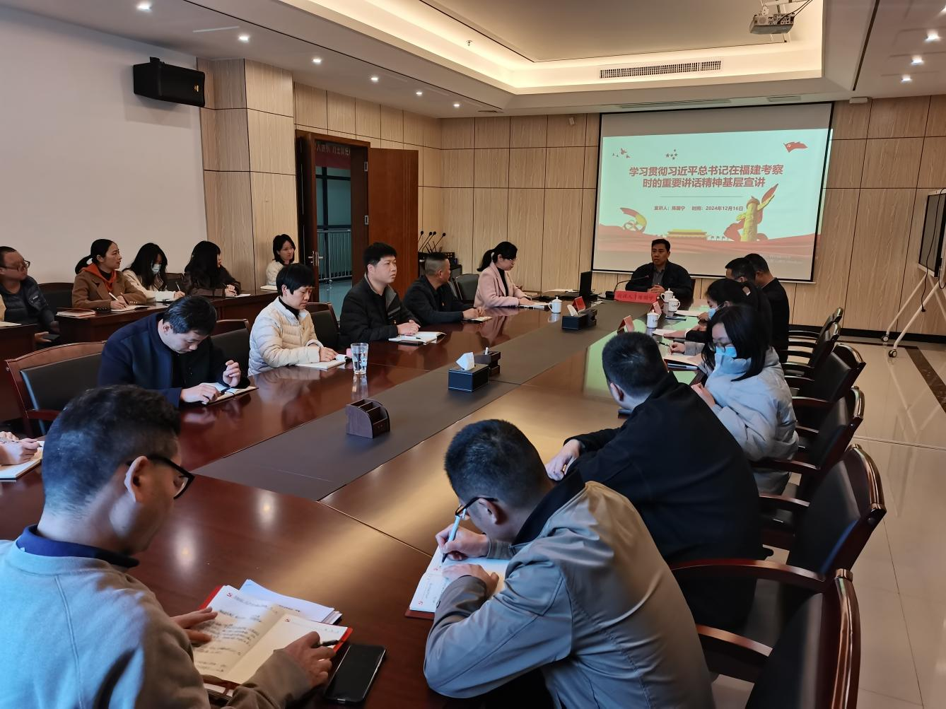习近平总书记在福建考察时的重要讲话精神为深入学习贯彻习近平来闽考察重要讲话精神,进一步统一思想、凝聚力量,12月16日下午,木兰集团党委副书记、总经理陈国宁到91网 宣讲习近平总书记在福建考察时的重要讲话精神。宣讲会由91网 党总支委员、副总经理温夏白主持,91网 领导班子成员、直属党支部、莆洋公司党支部全体党员参加。 陈国宁围绕“习近平总书记来福建考察的重大意义、推动科技创新和产业融合发展的重要内涵、全面深化改革、扩大高水平开发的核心要义、推动城乡融合和区域协调发展的重要作用、践行提升文化影响力”等多个维度,对习近平来闽考察重要讲话精神进行了深入浅出、全面系统的解读和阐释,既有理论高度,又紧密联系实际。 陈国宁指出,要在内化于心中高品质淬炼。一是坚定筑牢忠诚之魂。要通过多种学习形式学习宣传贯彻习近平总书记来闽重要精神,深学细悟笃行,扛牢政治责任,铸牢忠诚之魂。二是坚持学以致用、学用结合。紧密围绕我市中心工作的同时,把习近平总书记在福建考察时的重要讲话精神全面融入工作中,切实发挥国有企业功能价值、社会价值。三是坚持党对国有企业的全面领导。牢牢把握国有企业在推动中国式现代化中的战略使命,进一步全面深化国有企业改革,坚定不移做强做优做大市属国有企业。 陈国宁强调,要在转化于行中高效率落实。一是抓重点项目建设。加快在建项目工程建设,提升项目谋划水平,大力争取资金,保障项目加快建设。二是抓明年工作谋划。要把贯彻落实习近平总书记在福建考察时的重要讲话精神与明年工作目标相结合,提前谋划明年重点工作、重点项目,确保全年各项目标任务全面完成。三是抓安全生产管理。要加大安全风险防控和隐患排查治理力度,全力做好岁末年初安全生产工作,牢牢守住安全底线。