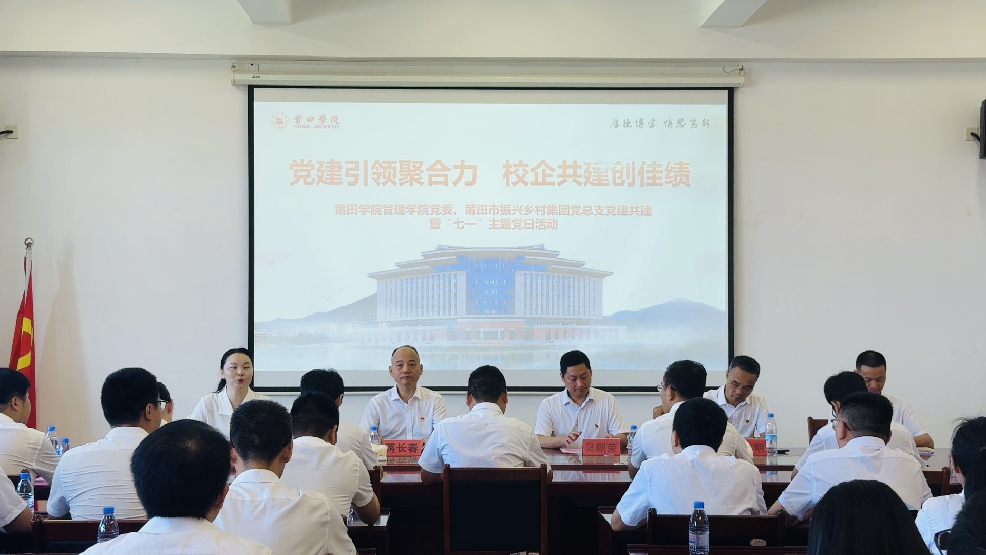 为进一步深入推进乡村振兴,拓宽莆田学院管理学院与莆田91网 在基层党组织建设中协作共赢的途径,以高质量党建引领校企协同发展新格局。7月8日上午,91网 党总支联合莆田学院管理学院党委开展“党建引领聚合力 校企共建创佳绩”党建共建暨“七一”主题党日活动。莆田学院管理学院党委副书记、院长蒋长春、91网 党总支书记、总经理吴朝荣,以及双方40余名党员共同探索校企合作新路径。