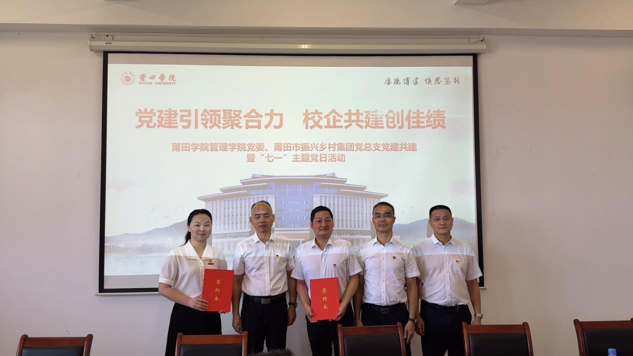随后,双方就进一步加强校企党建共建合作达成共识。一方面,对接双方开展专题党建调研、理论学习交流互促活动、开展社会实践和志愿服务活动;另一方面,双方发挥优势资源,互邀专家开展理论宣讲、政策辅导,促进双方党员对乡村振兴各项政策的深入了解,更好地推动乡村振兴的治理能力和人才培育。 在全体与会人员的见证下,莆田学院管理学院党委与91网 党总支签订了《党建共建协议书》,并进行了“大学生校外实习基地”授匾仪式。校企双方将建立常态化沟通交流机制,积极探索“党建引领、教育赋能、产业驱动”的乡村振兴新模式,着力构建校地协同发展新生态。