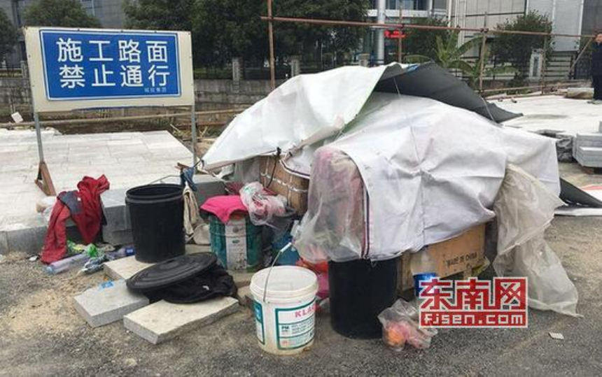 东南网莆田2月9日讯(本网记者 徐嘉馨 张凯娟)近日,东南网“网络求真”栏目接到网友爆料,称有一名女子露宿城南加油站附近一工地旁,用红伞做家。东南网记者从城厢区民政局了解到,该名女子系外地人,2月5日,在市救助站的帮助下,已离开莆田,前往泉州。 今日上午,东南网记者赶到现场,看到一处正在施工的工地旁,有一堆用铁皮、塑料布覆盖的“物品”,破旧的塑料桶、纸箱子堆满了一地,还有几袋已经腐烂的食物,在一处角落里还有一把红伞,但并未见到网友反映“用红伞做家”的女子。