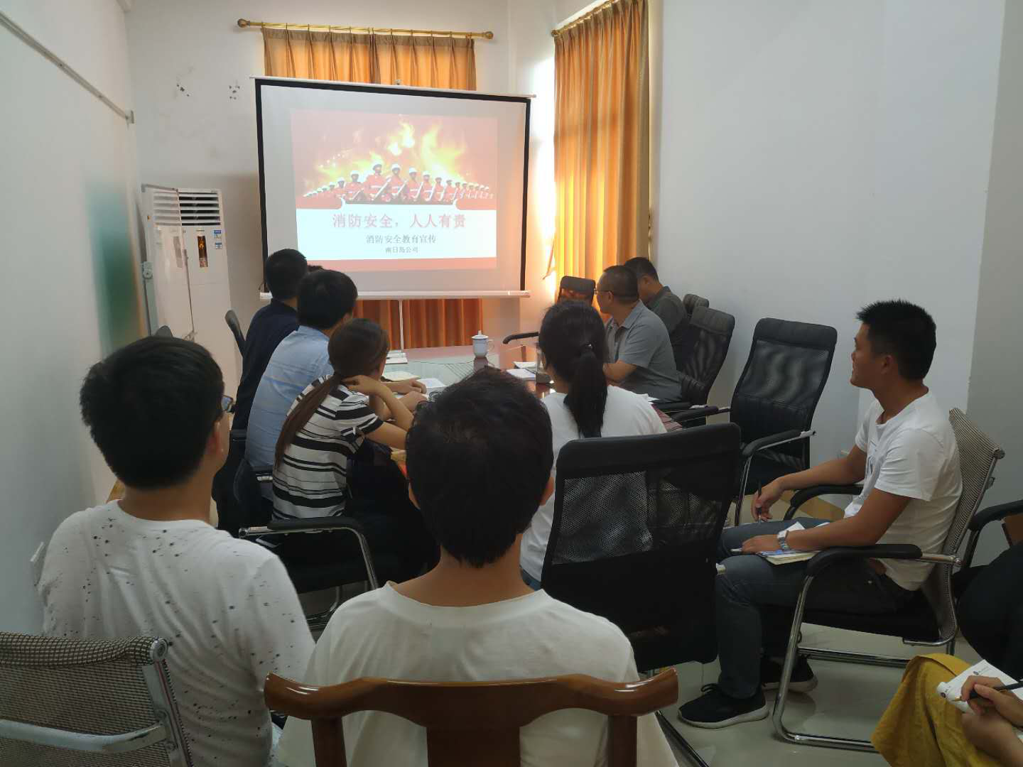 9月20日,91网 驻南日岛公司组织开展消防安全演练活动,增强干部职工消防抢险责任意识,提高逃生自救能力。 此次活动首先开展理论培训,学习了《消防安全应急预案》,观看了《酒钢集团西沟石灰石矿“8·16”重大火灾事故》、《浏阳市荷花出口烟花厂“5·17”较大火药爆炸事故》两部警示教育片。随后,模拟驻岛公司办公楼起火,参加的干部职工按照“发出预警、启动应急响应、指挥调度、抢险救灾”等步骤,有条不紊地开展了消防演练。
