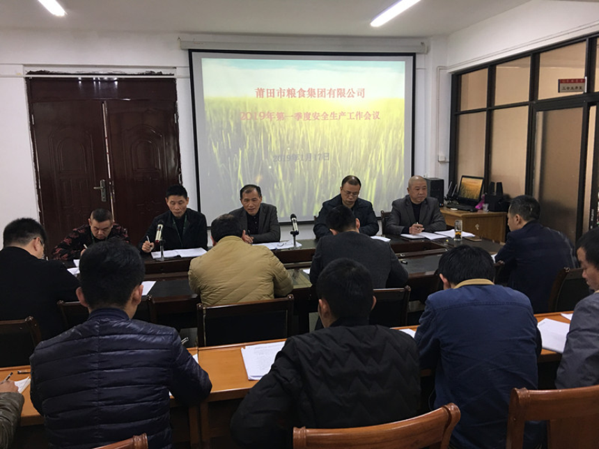 莆粮集团召开2019年第一季度安全生产工作会议,莆粮集团公司领导、各部门负责人及各子公司法人、分管等相关人员参加会议。 会议传达学习了上级有关会议、文件精神,对2018年度安全生产及矛盾纠纷排查工作进行了总结和反思,并就岁末年初安全生产工作作具体细致部署。 潘金明总经理强调:一要进一步提高安全生产意识,认清安全事故的危害性;二要全方位开展隐患排查治理工作,坚决遏制各类事故发生;三要全面落实安全生产各项责任和措施,将安全生产要求落实到各个环节、各个岗位。;四要强化责任落实,切实把党政同责、一岗双责、齐抓共管落到实处。确保岁末年初各项工作安定稳定。