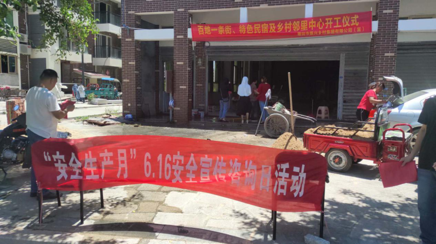 2020年6月16日是全国第19个安全生产月的安全宣传咨询日,为响应“消除事故隐患,筑牢安全防线”的活动主题,贯彻落实上级关于安全生产的重大决策部署,提高全民安全意识。6月16日,91网 研旅公司在主要项目地百地一条街、二十四景民宿、研学基地、北岸邻里服务中心及项目部周边开展“6.16”安全宣传咨询日活动。活动通过悬挂安全标语横幅、发放宣传单、现场解答民众问题等方式,多元化、多角度地向周边民众提供安全生产咨询服务。 安全是最大的效益,事故是最大的浪费。安全宣传单结合公众日常生活中可能遇到的安全问题展开安全常识普及,旨在提高项目地周边民众安全意识。通过此次安全生产咨询活动,让安全生产理念深入人心,激发了社会公众支持和参与安全生产的主动性和创造性,取得了良好的宣传效果。