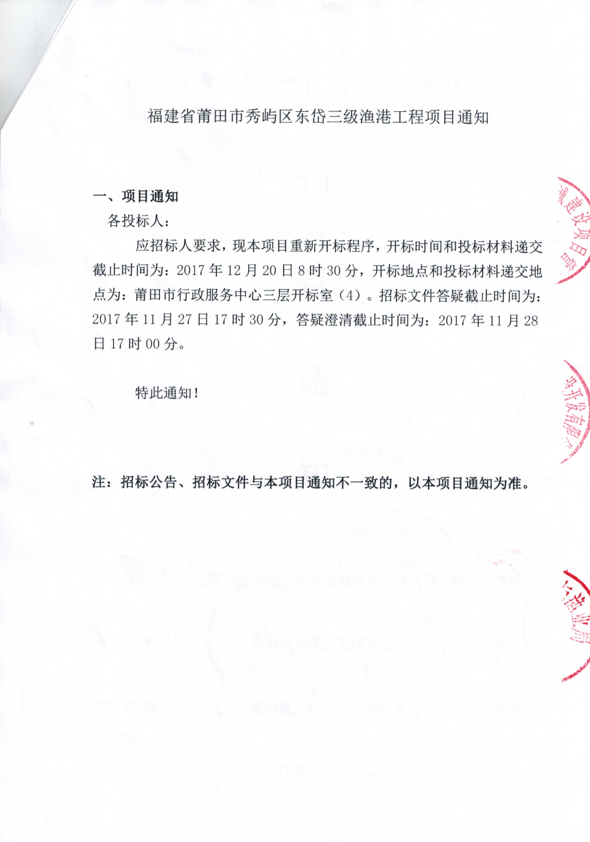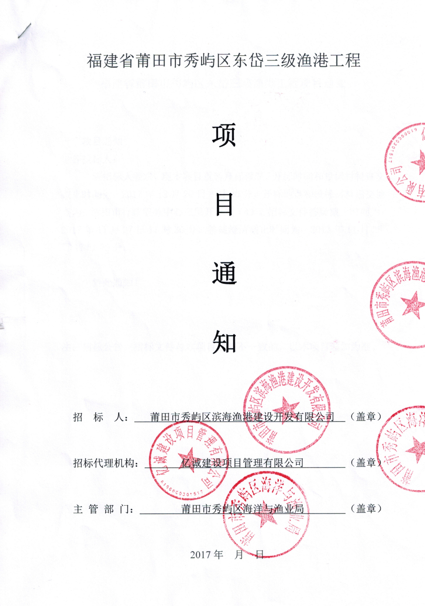 东岱三级渔港工程关于恢复施工招标的项目通知