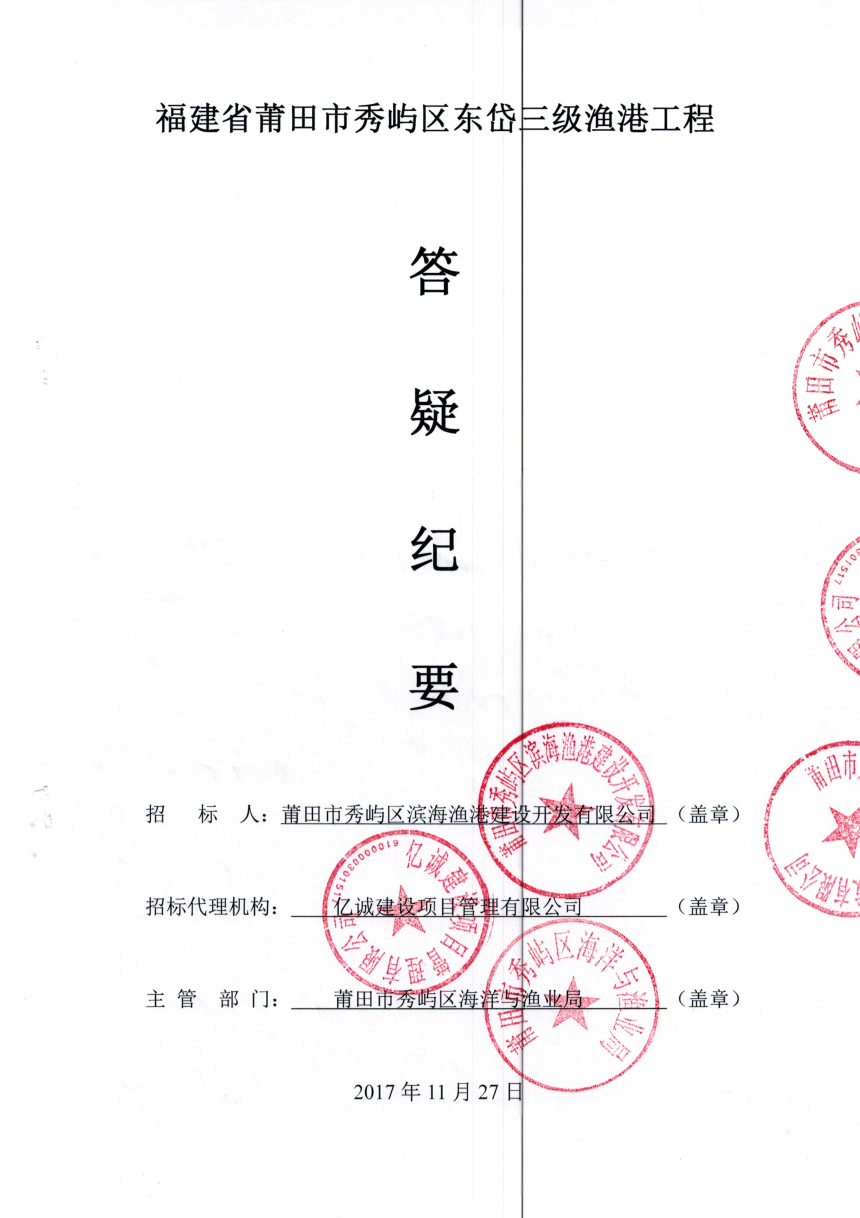 福建省莆田市秀屿区东岱三级渔港工程答疑纪要