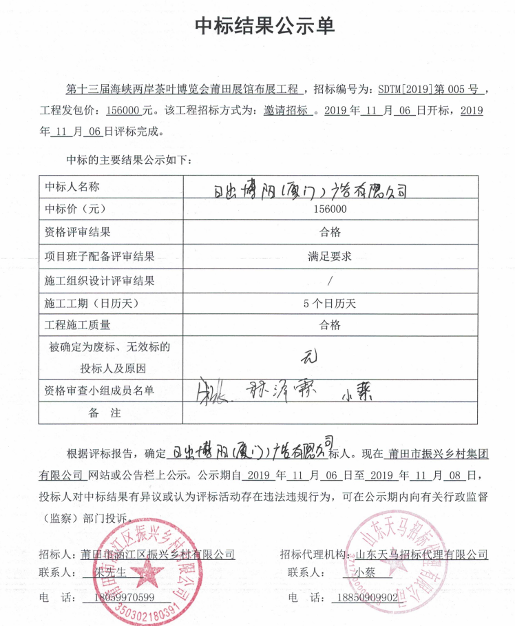 第十三届海峡两岸茶叶博览会莆田展馆布展工程施工招标文件随机抽取中标法