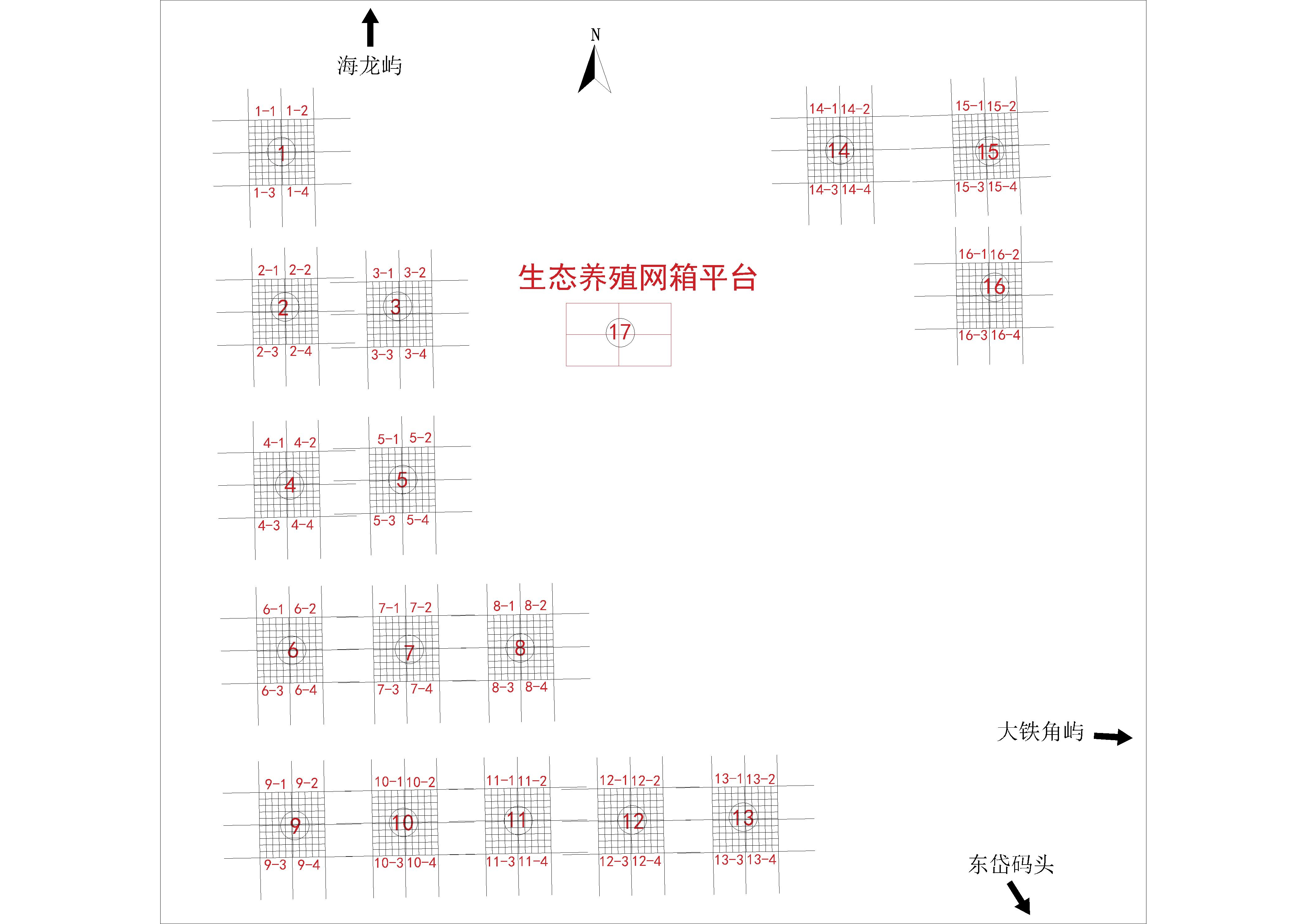 我司拟对南日岛东岱湾海域1600口全塑胶养殖渔排及生态养殖网箱平台进行公开招租,现欢迎具有资格的意向承租人前来参与竞价。 1、项目名称:南日岛东岱湾海域1600口全塑胶养殖渔排及生态养殖网箱平台招租 2、招租目的:为了有效利用南日岛东岱湾海域养鲍塑胶渔排及生态养殖网箱平台,促进东岱湾渔业生态养殖、休闲渔业的发展,最大限度地发挥其经济效益和社会效益。 3、项目位置及规模:本次招租的1600口全塑胶养殖渔排及生态养殖网箱平台位于南日岛东岱湾景观型生态休闲渔业发展项目区海域内,规格为每口踏板中线尺寸4m*4m,每台(组)25口(5行×5列)制造单元,包含:承载构件、固泊系统等;另有1个生态养殖网箱平台,规格为15m*20m,荷载13吨,包含承载构件及固泊系统等。(具体详见下表)