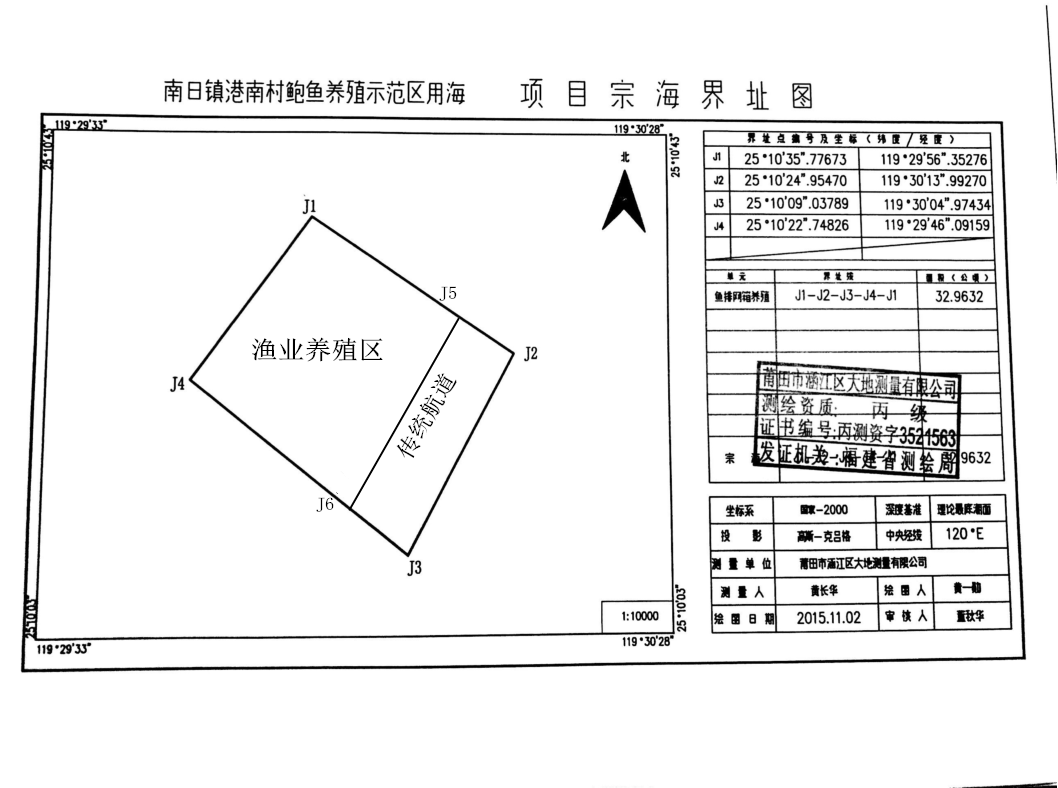 我司拟对南日镇港南村鲍养殖示范区海域进行公开招租,现欢迎具有资格的意向承租人前来参与竞价。 1、项目名称:南日镇港南村鲍养殖示范区海域招租 2、招租目的:为了有效利用南日镇港南村鲍养殖示范区海域,最大限度地发挥南日镇港南村鲍养殖示范区海域的效益。 3、项目位置及规模:本次招租的海域位于南日镇港南村鲍养殖示范区内。 招租海域规模:400亩 具体详见宗海界址图