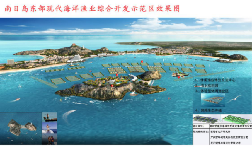 据悉,南日岛东部现代海洋渔业综合开发示范区项目由南日海洋集团建设开发,计划总投资为1.5亿,规划面积10530亩,将打造一个集生态养殖、休闲垂钓、渔家风情摄影、海上游钓、渔村文化旅游、渔家美食、亲渔体验、海岛旅游观光、钓艇渔港码头等现代海洋渔业多元化开发的综合体。
