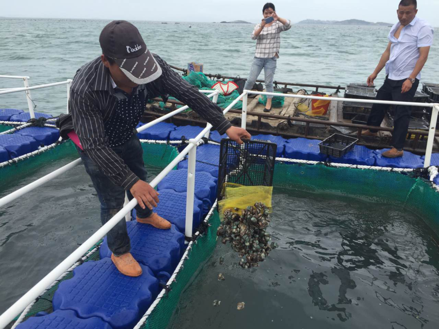 5月12日,南日岛风电区海洋牧场示范单元关键装备开发与应用项目“集约化网箱养鲍”试验正式启动。该项目是由福建南日海洋投资有限公司、福建省水产研究所以及莆田市水产技术推广站共同合作的科研试验性项目,目的是为了加快推进南日岛海洋牧场的建设,探索海上风电场与海洋牧场两场的有机结合,同时为今后项目的实施及推广打下坚实的基础。