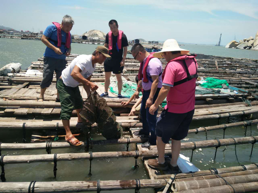 8月9日,中科院研究员李钧、青岛农业大学王春德教授等一行人前往南日岛就“渤海红”扇贝在莆田试养事宜进行实地勘察,滨海公司总经理林国荣及相关项目负责人陪同。 王春德教授等人先后前往港南生态养殖示范区、东岱湾海域,实地了解海区水质底质情况。在随后的座谈会中,王春德教授和南日集团林超雄董事长就“渤海红”扇贝在莆田试养等事宜进行洽谈并达成合作意向。
