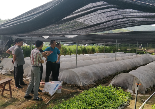 7月27日,振兴能源公司经理陈清海、仙游县振兴公司执行董事谢静海、经理伊朝东及项目负责人一行前往园庄镇考察九楼山花木有限公司建设的精准扶贫苗圃基地,详细了解苗圃中多样化产业结构、收入来源等相关信息,并就当前的现状及精准扶贫发展方向与该苗圃基地负责人进行交流讨论。