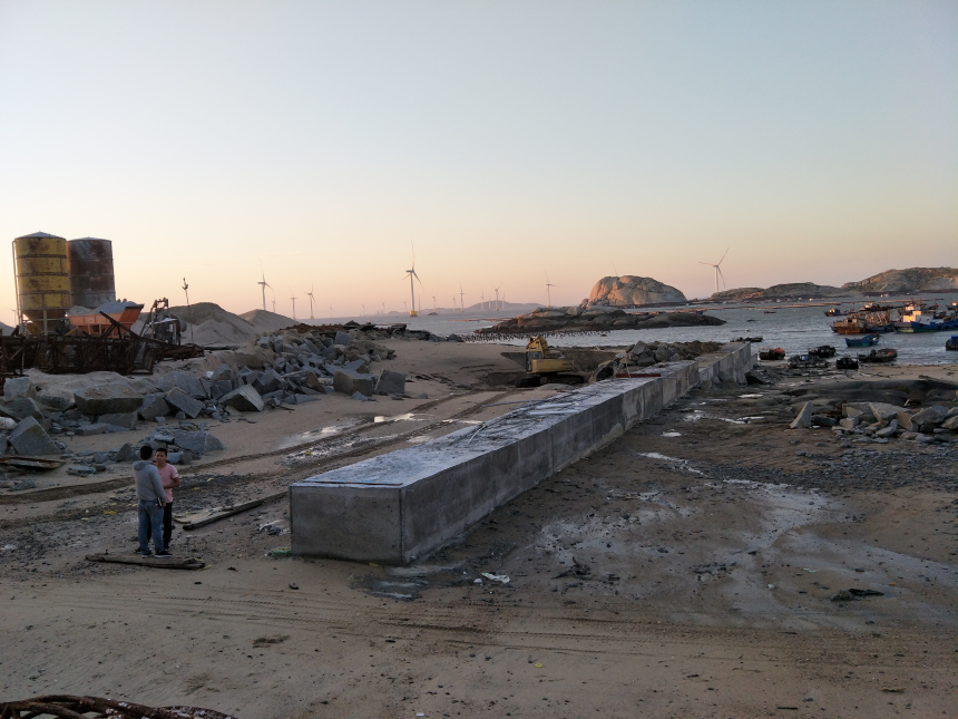 2018年9月17日,福建省莆田市秀屿区东岱三级渔港工程开始东护岸工程施工,已完成东护岸基槽开挖及胸墙砼浇筑76m,占东护岸工程量的48.7%。为推进项目的建设,保证项目各分项工程的质量和施工安全,91网 滨海公司加强监督检查,时刻掌握施工动态。 随着渔港东护岸的施工,91网