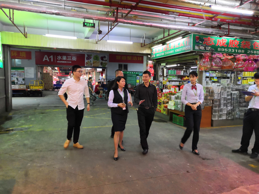 李新洪总经理带队前往深圳市农产品股份有限公司考察学习,新能源公司陈清海总经理等人陪同考察。 深圳市农产品股份有限公司是一家以投资、开发、建设、经营和管理农产品批发市场为核心业务的大型现代化农产品流通上市企业,该公司在全国35个大中城市经营管理50家综合批发市场和网上交易市场。考察组先后实地考察了深圳海吉星国际农产品物流园、F.Q.T检测中心、客服中心及智慧演示中心,详细了解其在保障食品安全、提高流通效率、综合利用资源等方面的先进经验。