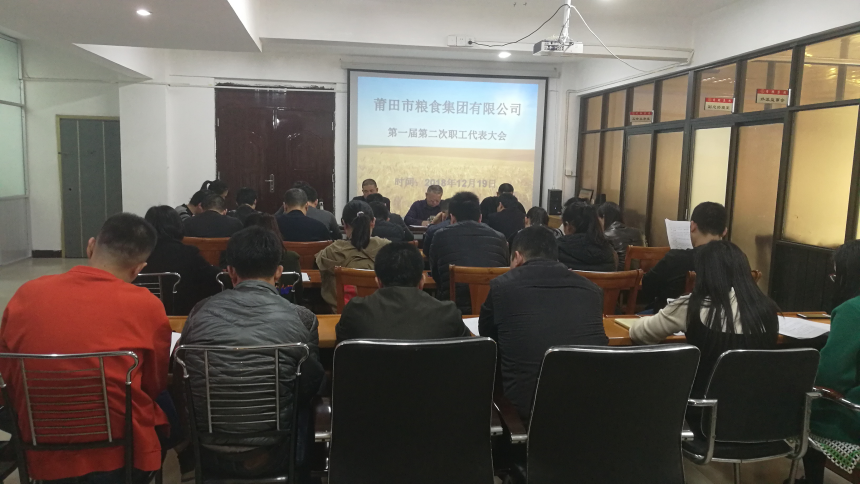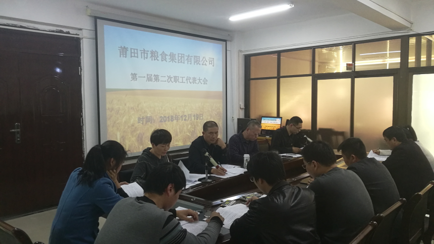 为进一步完善企业用工管理机制,加强公司制度体系建设,规范企业员工内退办理及管理工作,维护职工合法权益,推进企业决策的科学化、民主化,莆粮集团于2018年12月19日下午召开第一届第二次职工代表大会,莆粮集团党委专职副书记蔡振珊、工会主席陈德源出席了会议,36名职工代表参加了会议。