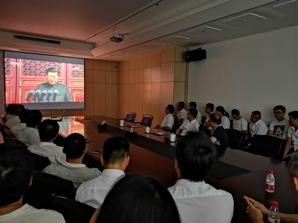 升旗仪式结束,全体干部在会议室集中认真收听收看习近平总书记在庆祝中华人民共和国成立70周年大会上的重要讲话和盛大的阅兵式。 |