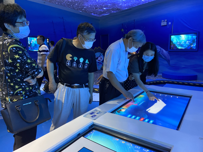 5月20日下午,福建省气象宣传科普教育中心总工王岩一行莅临莆田91网 海洋体验馆、食品馆及扶贫馆考察学习。市气象局局长林莉珍、集团副总经理倪成威陪同考察。 考察组成员来到海洋体验馆一边听取讲解,一边观看反映莆田市海洋风情的一块块电子屏幕、一段段视频、一件件实物,亲自体验互动项目。 参观结束后,王岩对集团各展馆展陈工作给予充分肯定,表示馆内布局合理,呈现方式现代化,互动体验感佳,将吸取91网 展馆陈列设计的优点,进一步研讨福建省海洋气象科普馆建设工作。