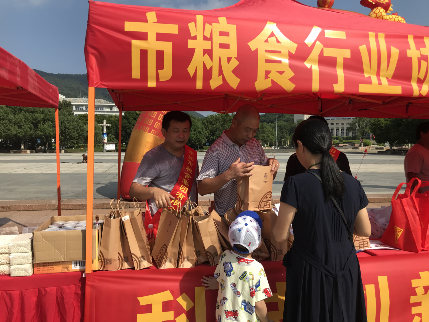 8月29日上午,由市发改委主办,市粮食行业协会、城厢区发改委等协办的“2020年全国粮食和物资储备科技活动周”在市政府广场举行。91网 莆粮集团副经理佘建忠带领员工积极参与科技周宣传活动。 本次活动以“科技创新促发展,兴粮兴储保民生”为主题,围绕粮油科技创新成果、优质粮油营养健康知识等内容,向广大市民开展粮油科技宣讲活动。莆粮集团在现场发放了《撩开“面”纱》、《揭开“米”迷》、《解开“油”惑》等宣传册、壶兰耕读小礼品共计100多份,进一步提高了市民科技兴粮、绿色消费、爱粮节粮的意识,取得了较好的宣传效果。