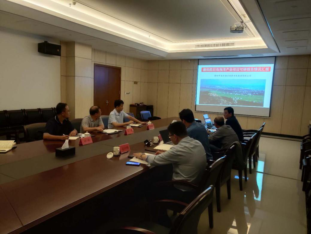 副总经理李靖邀请中国水产科学研究院黄海水产研究所成果转化处处长王印庚一行人参加妈祖海洋经济产业园区分析研讨会,南日海洋集团总经理张秋丁等人参会。