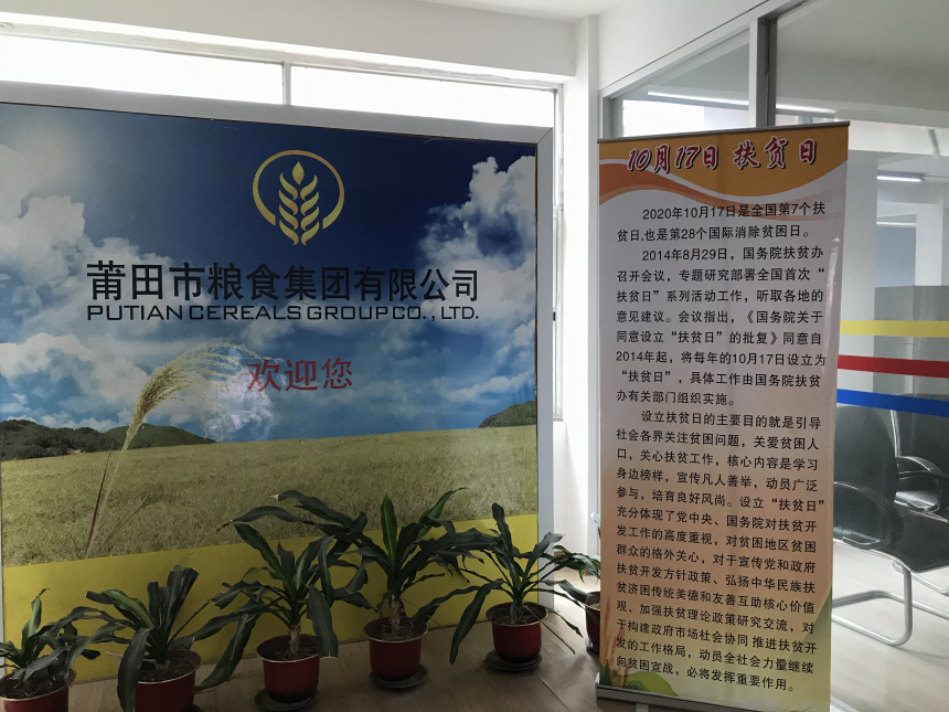 2020年10月17日是全国第7个扶贫日,也是第28个国际消除贫困日。近日,莆粮集团围绕公司制定的相关扶贫日活动方案,广泛组织动员,提前营造活动氛围。 一是加强领导,积极动员。围绕“市91网 2020年扶贫日活动方案”工作部署,公司领导高度重视,积极带头参与系列活动,组织领导班子学习《习近平扶贫论述摘编》精彩篇章,加强脱贫攻坚正面宣传。 二是积极宣传,营造氛围。利用横幅、海报等载体对扶贫日活动进行宣传,组织员工在午后的休息时间观看《决战脱贫在今朝》系列纪录片,同时将组织员工于10月17日收看2020年全国脱贫攻坚奖表彰大会等电视直播节目,多形式营造活动氛围。 三是以购代捐,消费扶贫。鼓励公司工会及员工在同质同价等同等条件下,积极购买扶贫产品,倡导以购代捐,助力脱贫攻坚战。活动期间累计已采购扶贫产品1万多元。