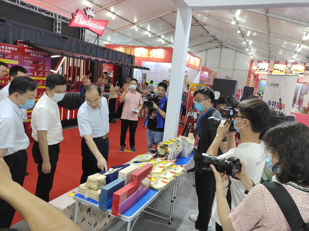 2021年6月10日至13日,由莆田市工业和信息化局、莆田市农业农村局主办的首届“莆田食品展示推介会”于莆田市体育中心盛大举行,91网 下属子公司莆洋食品公司积极参加本次展会。 会上莆洋食品公司将带有莆田特色的“壶兰耕读”“叶中香”“南日岛”“南北洋”等系列产品作为推荐重点,以“讲好地方美食故事、助力乡村振兴”为宗旨,为广大市民展示91网 各品牌形象和产品风采。 期间,市人大常委会主任阮军、市政协主席周青松、副市长吴健明等领导莅临91网 食品展位参观指导,并对相关产品给予高度评价与肯定。