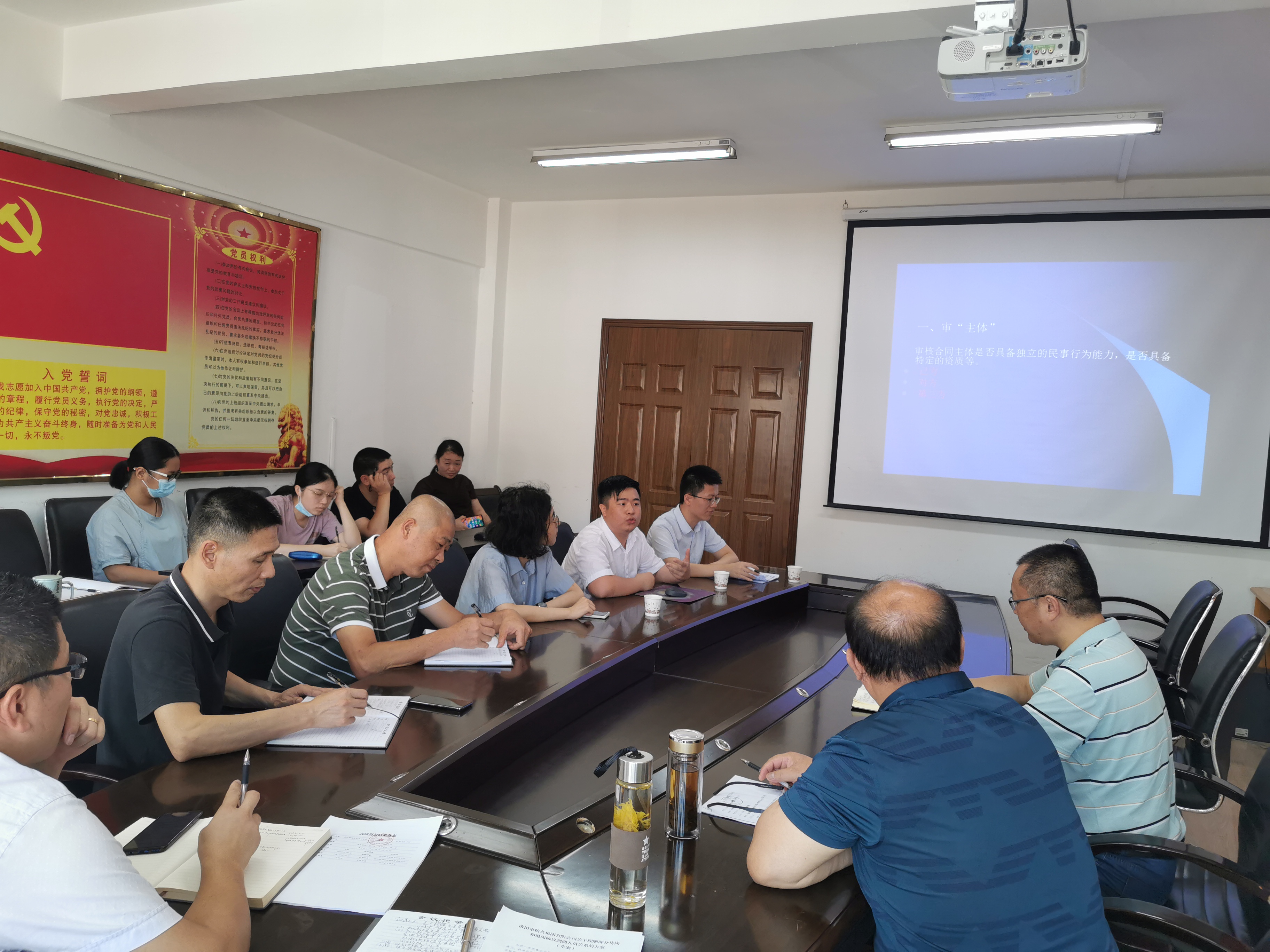 为进一步增强干部职工的法律意识和法律观念,合法、合规的规避合同风险,提高合同签订方面的业务能力,切实维护公司的利益。近日,莆粮集团组织开展了一期合同签订知识主题的知识培训。公司全体干部职工参加了培训。 本次专题知识培训邀请福建湄海律师事务所胡建林律师进行授课,授课过程中胡建林律师从提升法律意识、控制法律风险,合同签订的主体、标的、价款和支付、违约责任、签订地点、履约时间、诉讼时效以及注重合同的合法性、条款的清晰明确和可操作性等15个方面,采用详实的案例结合理论,进行了深入而生动的讲授,使广大干部职工接受了一次专业的合同方面法律知识培训。 培训结束后,莆粮集团总经理林国荣作了总结发言,全体干部职工要深入学习合同法律知识,不断提高法律意识、合同意识,在今后从事各项业务工作中,涉及合同签订时,务必按照规范的合同范本要求,明确责任、把握底线,从有利于单位利益的角度出发,本着公平、公正的原则,既履行好自己的职责,又维护好单位利益。