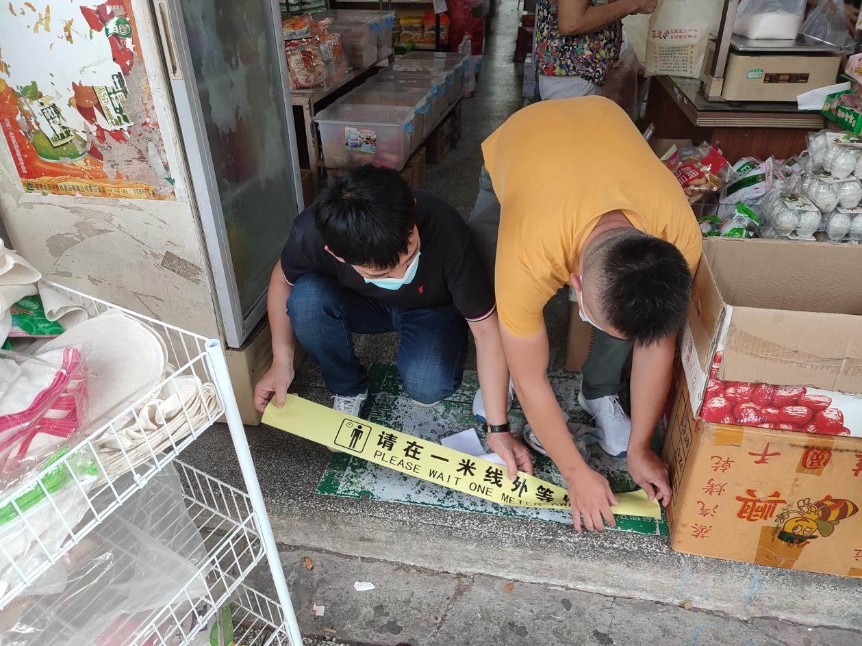 当前正值新冠疫情的再度反扑,8月10日下午,振兴投资公司疫情防控小组迅速行动,前往南门农贸市场开展防疫工作宣传,为各商铺分发疫情防控提示牌及铺设1米线指示标语,“一定要做好个人防护,不要聚集,请戴好口罩!”疫情防控小组成员一边向商户铺设防控1米黄线,一边反复嘱咐。南门农贸市场商户均积极配合、大力支持。