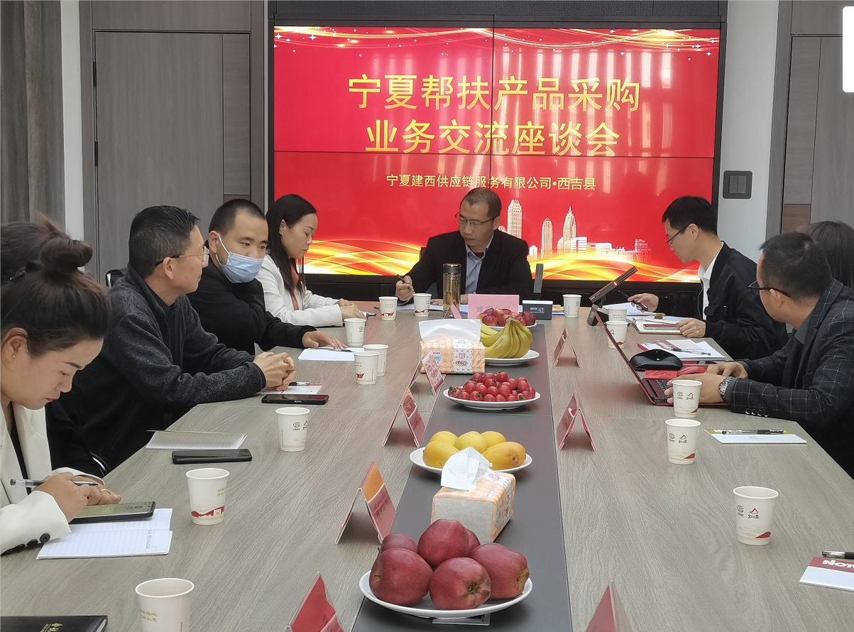 2023年4月26日下午,宁夏建西供应链服务有限公司在西吉县与供应商举行宁夏帮扶产品采购业务交流座谈会。为了增强企业之间的互信,深化交流合作,双方就进一步完善采购业务流程和深化闽宁协作进行了深入的交流。