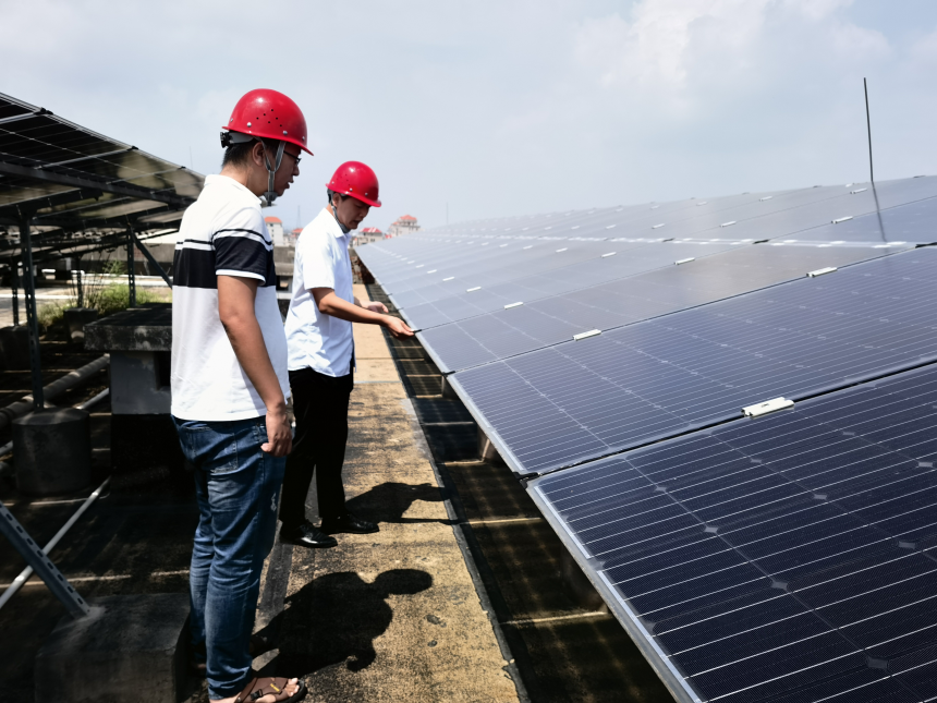 为防范今年第9号台风“苏拉”,积极做好防汛防台风相关工作,2023年8月29日,振兴能源公司总经理张秋丁带队前往我司已建项目莆田市乡村振兴分布式光伏发电项目一期(月塘)、莆田市乡村振兴分布式光伏发电项目二期(北岸)开展防汛防台安全检查工作,实地查看了基座是否产生裂纹、倾斜,紧固螺栓失效,支架是否锈蚀,防雷接地是否失效等情况。 下一步,我司将继续密切关注台风动态,强化监管不放松、细化工作不马虎,随时应对可能出现的突发状况,切实保障人民群众的生命财产安全。