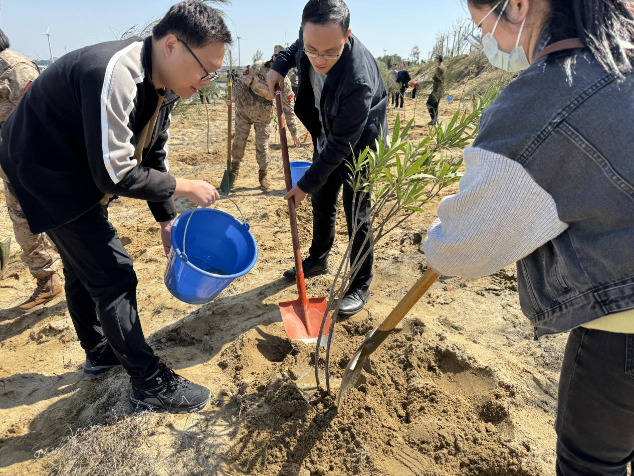 3月既是学雷锋月,又是义务植树月。为深化拓展“深学争优、敢为争先、实干争效”行动,扎实推进“我为群众办实事”实践活动,进一步提高党员干部爱绿植绿护绿意识,3月12日,南日海洋集团分别与秀屿区团区委,南日镇团委、学苑建设公司党支部,省建筑设计院总包党支部在莆田市南日岛海洋文化创意园周边联合组织开展义务植树活动。 活动现场,大家挥锹铲土、扶正苗木、培土围堰,有条不紊地种下夹竹桃、木麻黄等树苗,让“志愿红”与“生态绿”形成了一道亮丽的风景线。