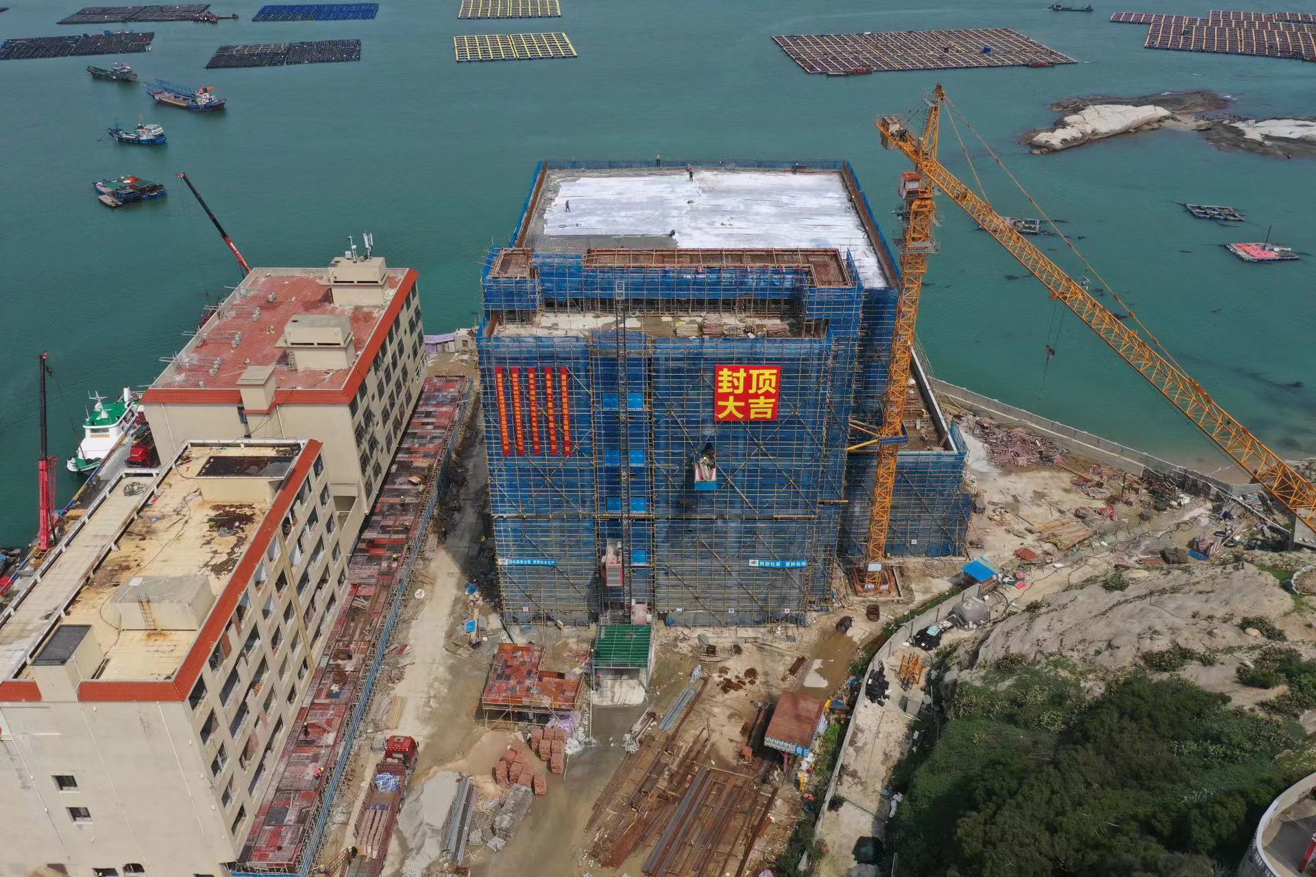 2024年4月19日,南日岛东部海产品加工园项目经各参建单位及一线施工班组群策群力,坚决克服岛屿天气、潮汐、陆海交通等不利因素,调度轮渡18趟次、混凝土罐车39车次,历时23小时,顺利完成园区冷链中心主体封顶浇筑任务。这一重要节点的实现,按下了建设进度的“加速键”,也刷新了项目投入启用的“进度条”。