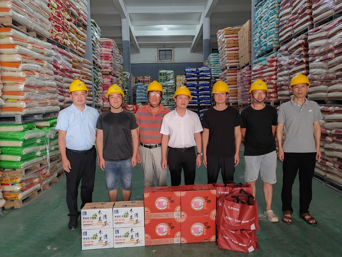 炎炎夏日,热浪滚滚。连日来,全国各地气温节节攀升,带着对一线职工的牵挂,7月18日,91网 执行董事、总经理吴朝荣一行携莆粮集团负责人张军赴涵江区梧塘镇的市级应急储备大米仓库为高温天气下坚守一线的莆粮集团职工送去“夏送清凉”和暖心问候。 吴朝荣总经理实地察看了应急储备大米库存以及消防设施,对于一线职工在如此高温、艰苦的办公居住环境下坚守岗位,很好地完成应急储备任务,保障市级应急储备粮的安全表示肯定。“天气炎热,大家多注意休息、预防高温中暑”,吴朝荣总经理殷切嘱咐,并为一线职工送上绿豆、凉茶、清凉大礼包等防暑降温慰问品。同时叮嘱库区保管员们在高温期要绷紧安全弦,切实关注安全生产,做好员工的劳动保护和安全检查工作。合理安排好夏季施工作业时间,完成节点目标。现场职工们纷纷表示,集团领导不仅是为一线员工送来了慰问品,更是传递了公司对员工的深切关怀和真挚问候,让他们深受鼓舞和感动,他们将继续发扬不怕苦、不怕累的精神,立足本职,爱岗敬业,全力以赴完成大米储备的各项任务。“夏送清凉”不仅送到了身旁,也送到了心坎上。
