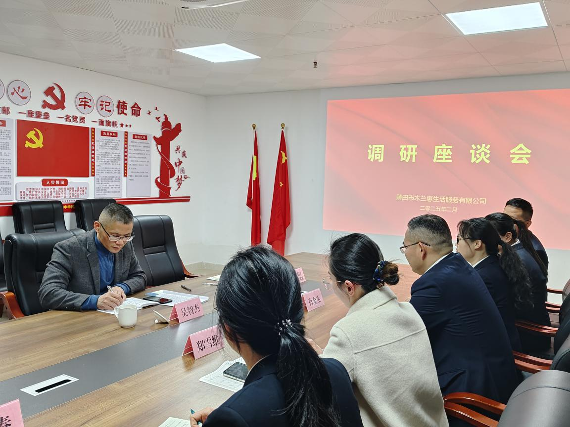 2月19日,木兰集团纪委书记吴智杰一行前往莆田市木兰惠生活服务有限公司(简称木兰服务公司)开展调研工作,并与木兰服务公司相关人员召开座谈会。会议主要围绕木兰服务公司物业管理、档案整理、餐饮管理等业务运转情况及下一步工作思路进行了充分交流探讨。 吴智杰书记指出,木兰服务公司作为集团新收购的服务型企业,具有业务多元、模式灵活、市场化程度较高等特点,要围绕木兰集团战略发展规划,持续发挥市场化体制机制的优势,努力开拓更为广阔的发展前景。一要增强服务本领。积极关注服务对象的需求,不断提升服务水平,以更高标准的服务品质抒写“木兰服务”新篇章。二要增强廉洁建设。加强党风廉政建设,牢固树立规矩意识,营造风清气正的廉洁氛围。三要增强品牌力量。主动对齐行业标杆,探索建立品牌标准,着力提升“木兰服务”的品牌价值。