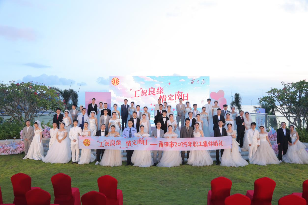 9月29日至30日,南日岛木兰雅途酒店圆满承办莆田市 2025 年“共赴海岛之约”职工集体婚礼,29对新人在此定格幸福瞬间。这场婚礼由莆田市总工会、中共秀屿区委、秀屿区人民政府主办,秀屿区总工会、莆田市南日海洋投资开发集团有限公司工会承办,以 “‘工’祝良缘 情定南日” 为主题,成为海岛秋日里的浪漫盛事。