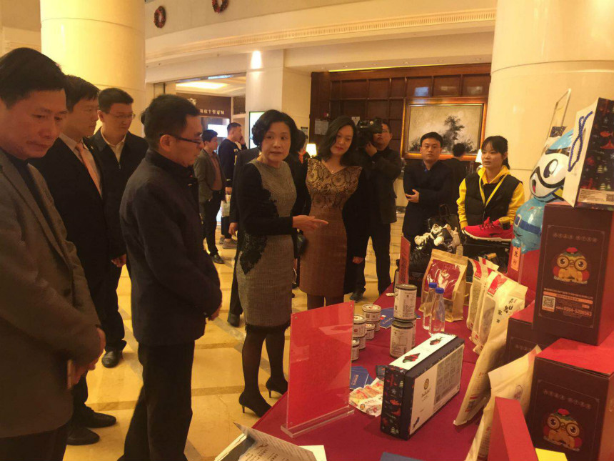 莆田市副市长陈惠黔莅临首届“妈祖杯”海上丝绸之路国际羽毛球挑战赛现场参观南日集团莆田特色产品展