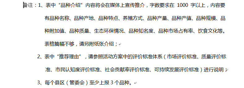 2.推荐上报(3月28日-4月25日)。各县区(管委会)海洋与渔业行政主管部门和旅游局要认真做好组织发动工作,多途径、多方式地广泛宣传发动镇(街)村(居)、协会、渔业公司(合作社)和养殖场(育苗场)、养殖户等各界群众,充分挖掘本辖区渔业名优产品参加评选。各县区(管委会)海洋与渔业行政主管部门要认真仔细填写《“莆田市首届十大渔业珍品”评选各县区(管委会)品种推荐表》(见附件3),并以纸质材料(盖章)和电子版两种方式于4月18日之前报送活动组委会办公室(邮箱:ptyygl@126.com ;传真:2685851),逾期视为弃权。