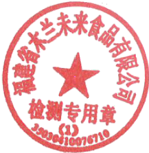 因业务拓展需求,为进一步优化公司工作效率,确保检 测相关业务的及时性,即日起在涉及产品检测、质量报告、 数据分析等纯检测业务的文件流程,启用福建省木兰未来食 品有限公司检测专用章。